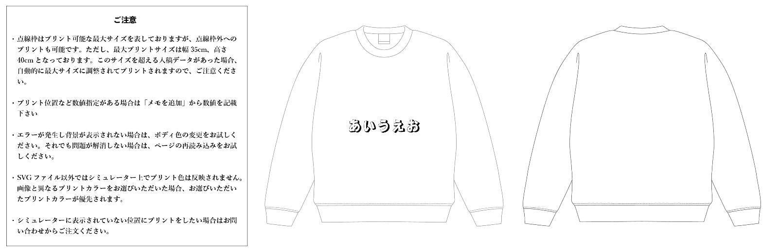 We do not accept work to align the designs on the front and back of a T-shirt, as this is prone to misalignment due to differences in position when laid flat and when worn, as well as individual differences.
