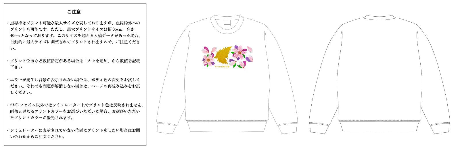 *If you order using the design simulator, the above amount will be automatically added if you change the printing category. (For details, please see How to Order / Processing Fees and Additional Fees.)
