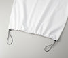 This playful yet practical T-shirt features two-tone drawstrings at the left and right hems. The drop shoulders create a relaxed silhouette, and by tightening the hem you can change the length and shape, expanding your styling options. Wear it as is for a relaxed, casual look.