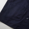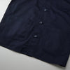 One of the selling points of rare French workwear is its versatility and functional beauty. This item is a modern take on the French coverall. The shoulder seams are slightly pushed back and the fabric is cut on the bias, allowing for easy arm movement. The cufflinks are attached to the inside of the sleeves, with darts for safety and no snagging. Rolling up your sleeves is also a welcome option, making this a garment that combines craftsmanship and design.