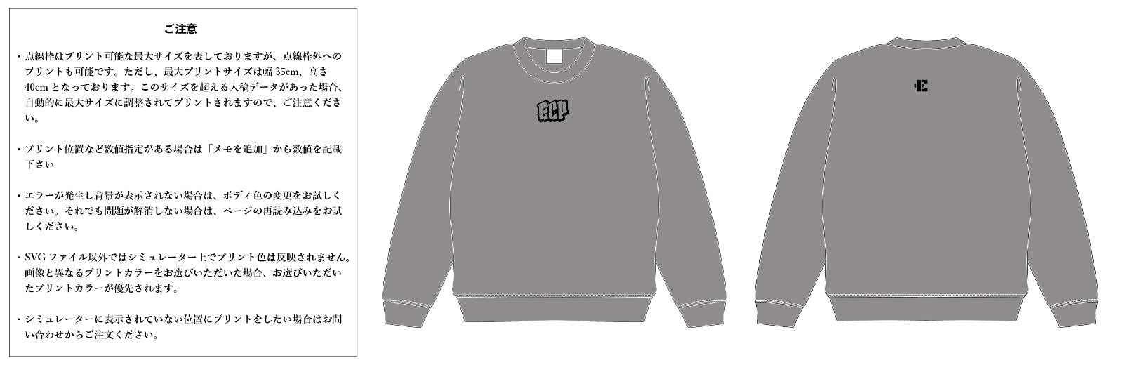 Tシャツの前面と後面でデザインを重ねる位置での合わせ作業は、平置きと着用時の位置の差異、個体差の影響でズレが発生しやすいため、受け付けておりません。