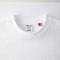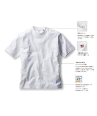 | 素材 | 米綿100% ※ホワイトのみ綿糸縫製 ※オープンエンド糸(空気紡績糸)使用 ※切れるネーム オンス:8.1 糸の太さ:12/- 生地の重さ:273g/ 生地の種類:天竺 |