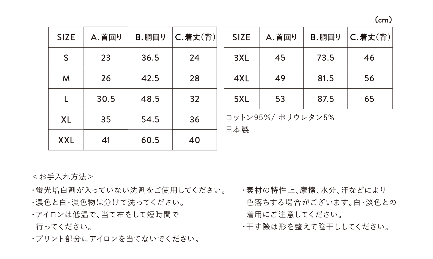 2XL: +250円  3XL: +500円