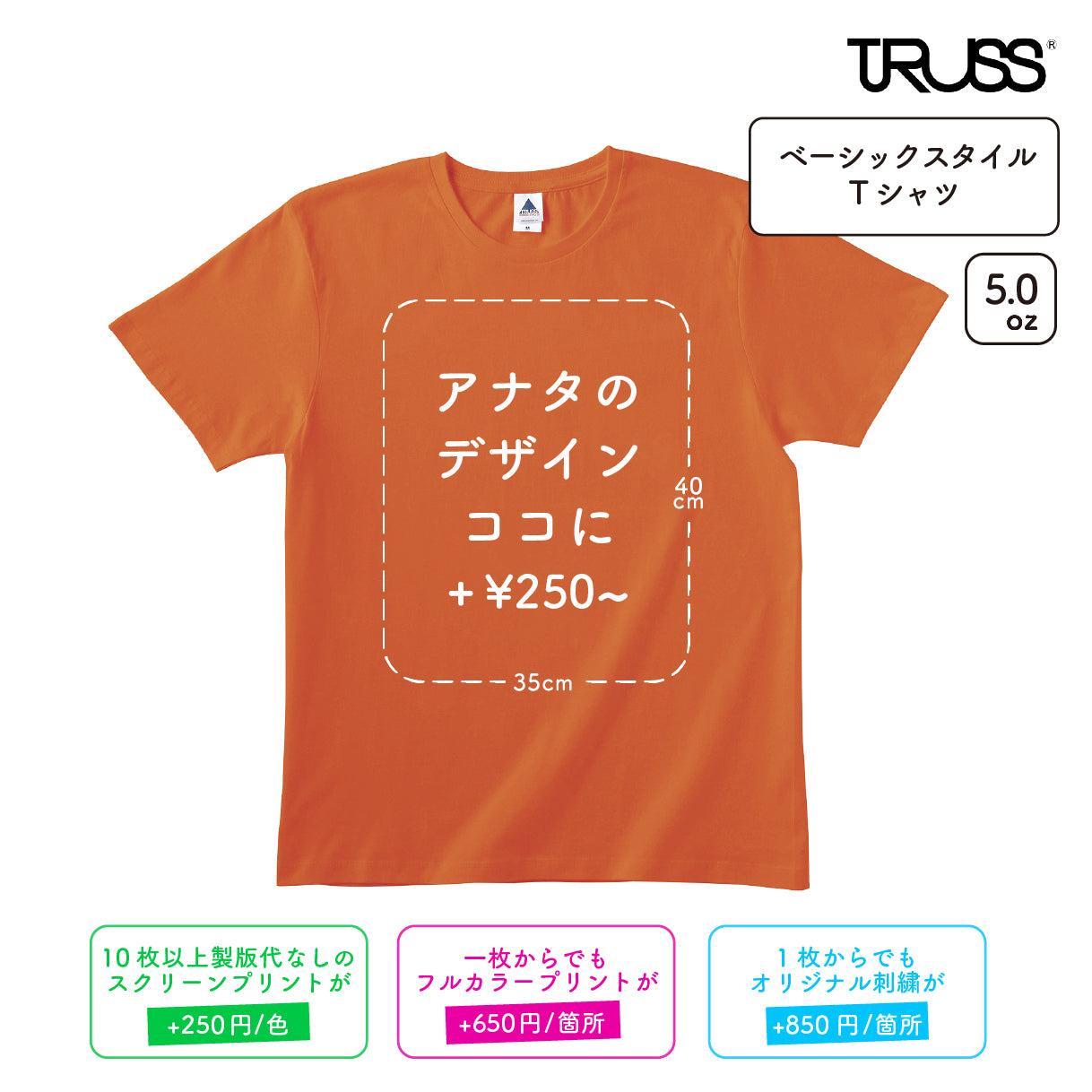 ・また、白インクを使用する場合や濃色のTシャツにプリントする場合は、1箇所につき追加料金として600円が必要です。