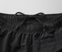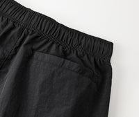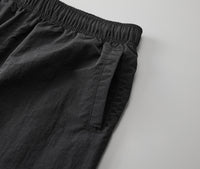 | 素材 | ナイロン 100% タスランしわ加工生地 ※脇ポケットあり、脇縫いなし、ウエスト丸ひもあり(内側)、ヒップポケットあり(右側)、裾口シャーリング始末 |