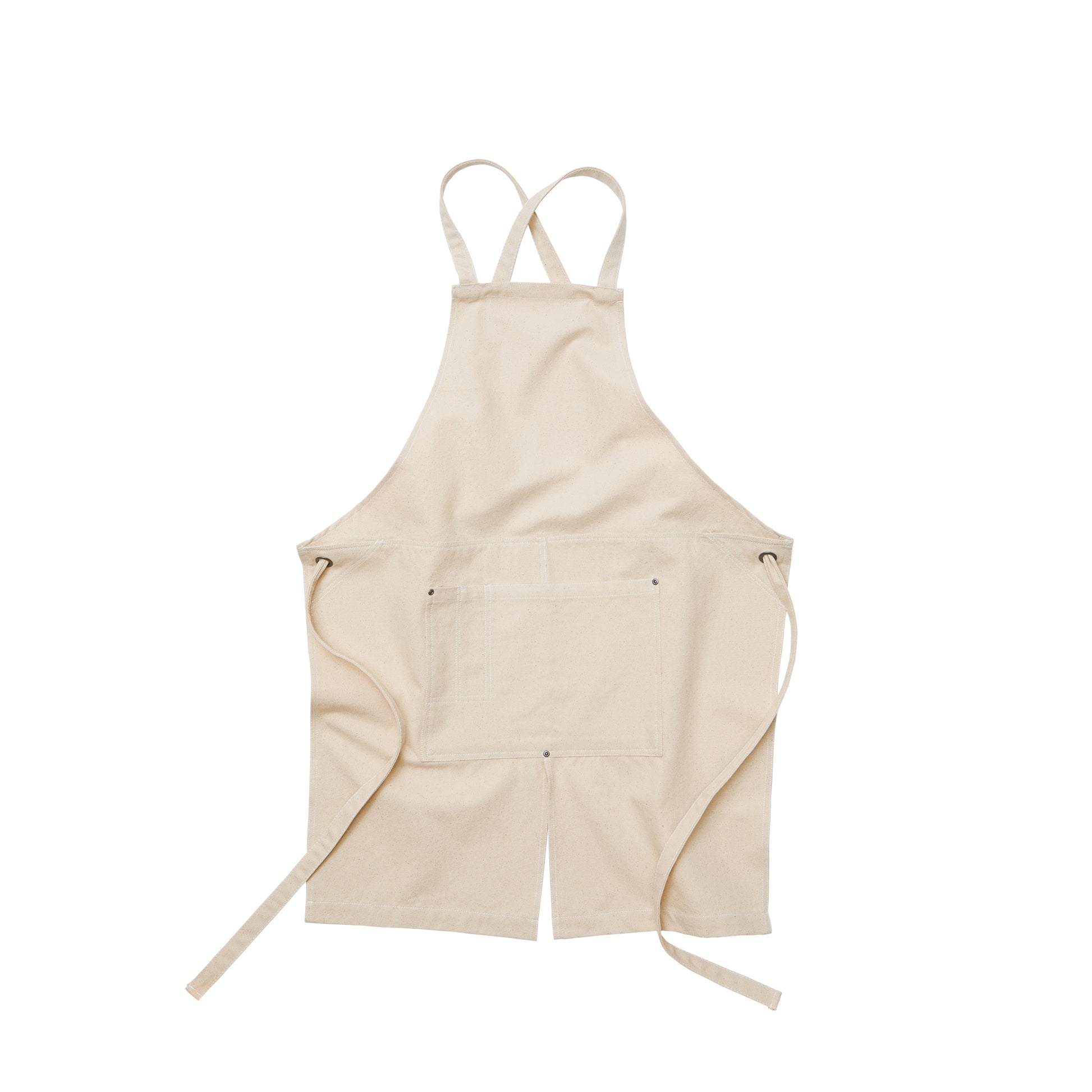 厚手で丈夫な12.2oz/yd²のキャンバス生地を使用したエプロンです。フロントにスリットを入れることで、引っかかりを軽減し、しゃがんだり動いたりしやすい仕様となっています。キッチンやガーデニングなど、幅広い作業シーンに対応できる実用的なデザインです。