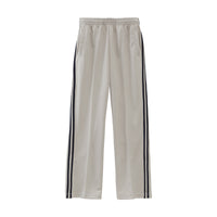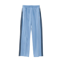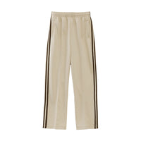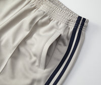 細すぎず太すぎず、快適に身体を動かせるサイズ感で設計したトラックパンツ。心地よいフィット感はまさに「今欲しいシルエット」でありクラシカルな雰囲気もたっぷりです。ウエストゴムに加え、ドローコードも付いているため、サイズ調節がしやすく、スポーツシーンでも安心して着用することができます。ポリエステル素材のスムース生地を採用しているため、肌ざわりが良く伸縮性や通気性も抜群のジャージ。「おしゃれな街着」としての着用も考慮したサイドラインやクリースステッチは、ブーツなどの革靴やサンダルなどと合わせたコーデにも相性抜群で、アーバンライフを支えるスタイリングを実現します。