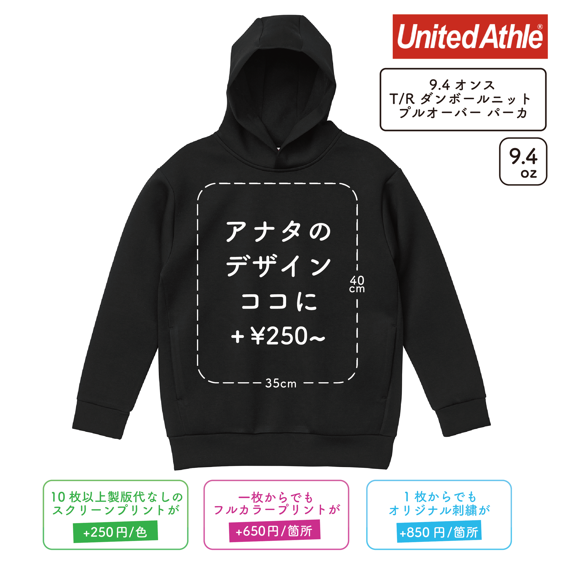 ・1箇所1色につき250円でプリント致します。